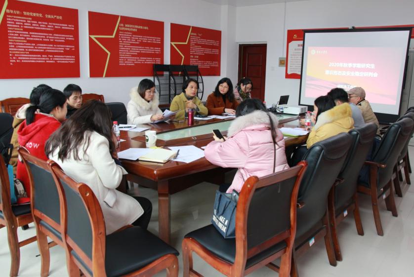 12月4日上午,研究生工作部在明德楼401会议室召开意识形态及安全稳定研判会,研究生工作部全体领导老师、研究生专兼职辅导员参加会议。
