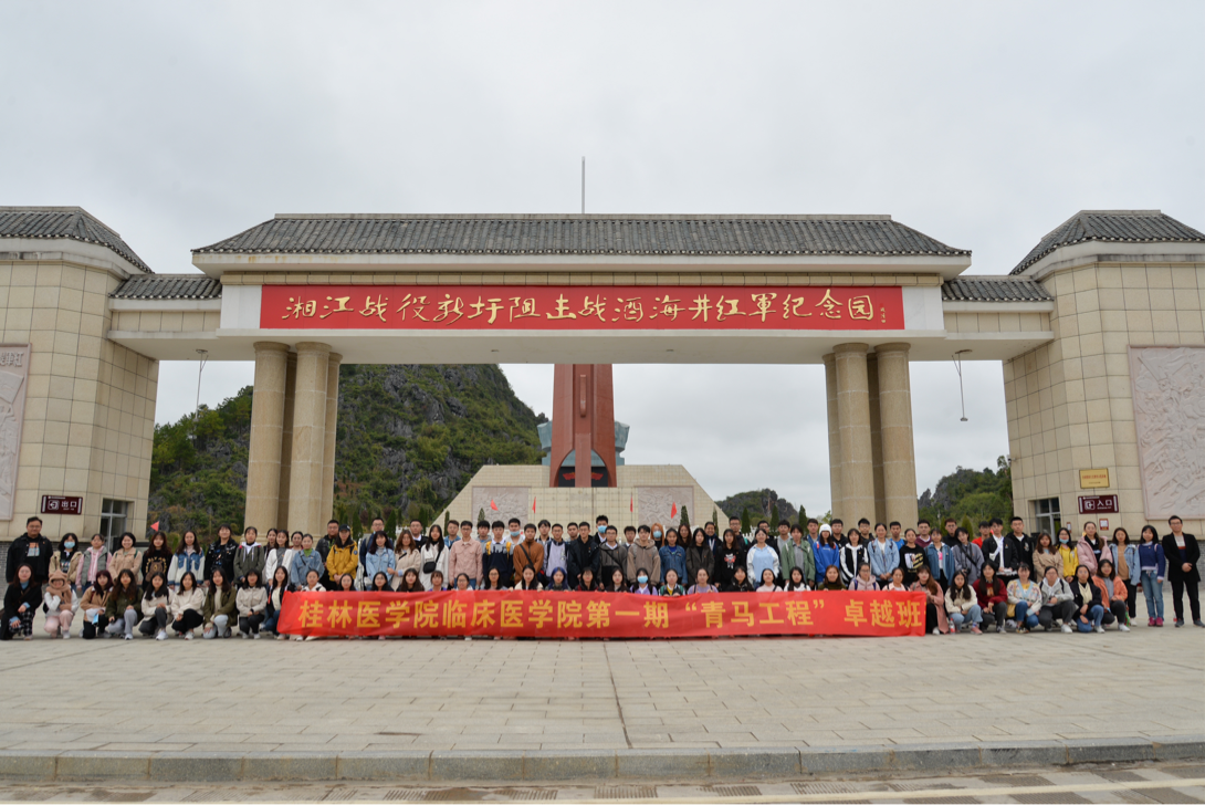 为弘扬革命精神,缅怀革命先烈,更好的学习、理解习近平总书记在党的十九大中提出的中国共产党人的“初心”和“使命”。近日,临床医学院第一期“青马工程”卓越班100余名学生赴灌阳县新圩阻击战教育基地开展“踏寻革命足迹,追忆峥嵘岁月”团员教学活动。本次教学活动分为:了解红军殉难史、瞻仰红军烈士墓、倾听战斗阻击史、体验万里长征路四大环节。活动当天,全体团员干部不惧气温骤降、冷风冻雨的天气追寻先烈们的足迹,先后走访参观了新圩阻击战陈列馆、酒海井烈士纪念园、战地救护所等教学点,听取多场主题教学课,开展重走长征路、深情唱红歌等活动,强化了爱国主义教育、革命传统教育、团学干部教育。