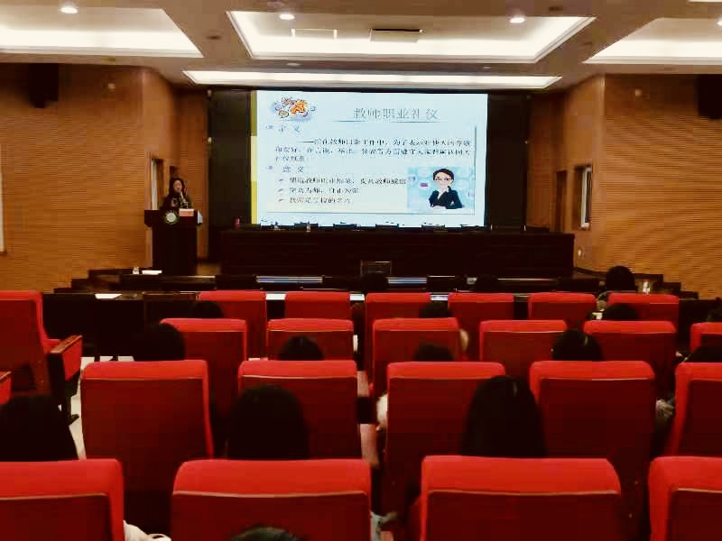 培训开始由中国专业人才教育工作委员会高级礼仪培训师、桂林旅游学院肖静老师为我校教职工做了以“展礼仪风采,做魅力教师”为主题的讲座。讲座中,肖老师详细讲解了专业优雅的行为举止和与时俱进的职场接待两个方面所涉及的生活和工作中的礼仪知识。
