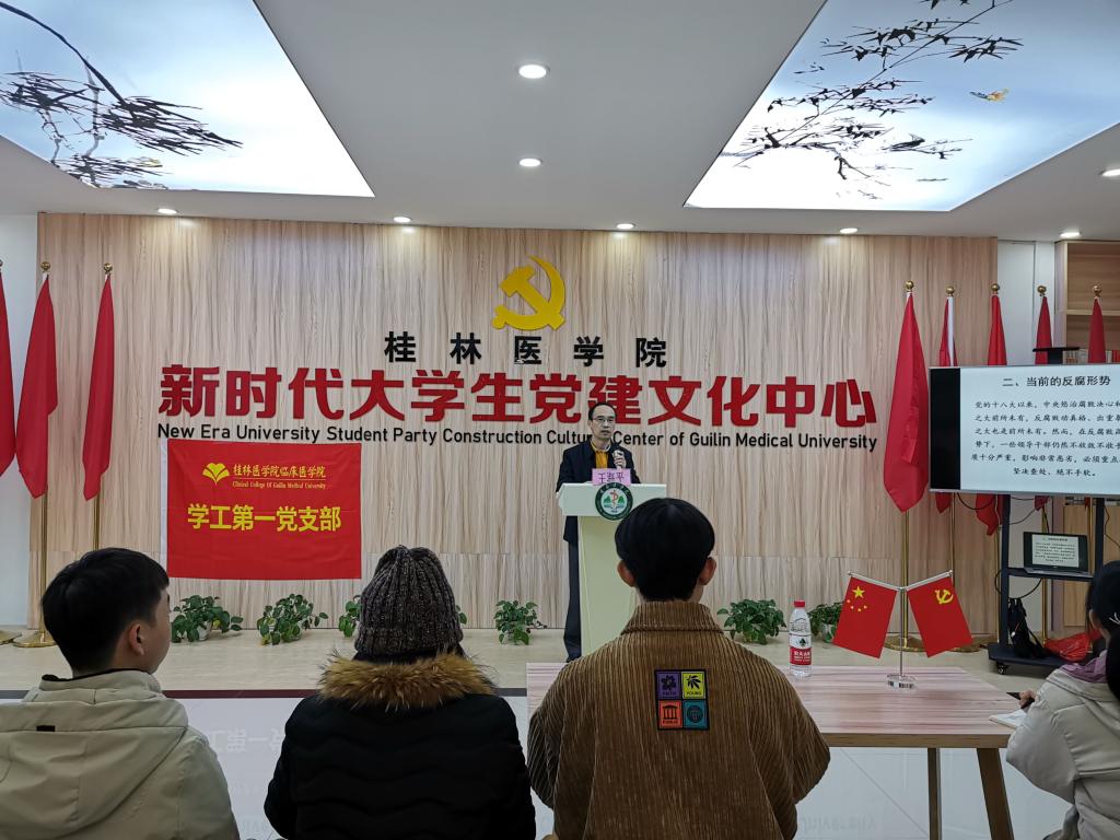 为加强学生党员的廉洁教育、帮助党员提高廉洁自律意识,12月5日下午,附属医院(临床医学院)党委副书记王海平在临桂校区大学生党建文化中心为临床学生党员上了一堂主题为“大学生廉洁教育”的党课。