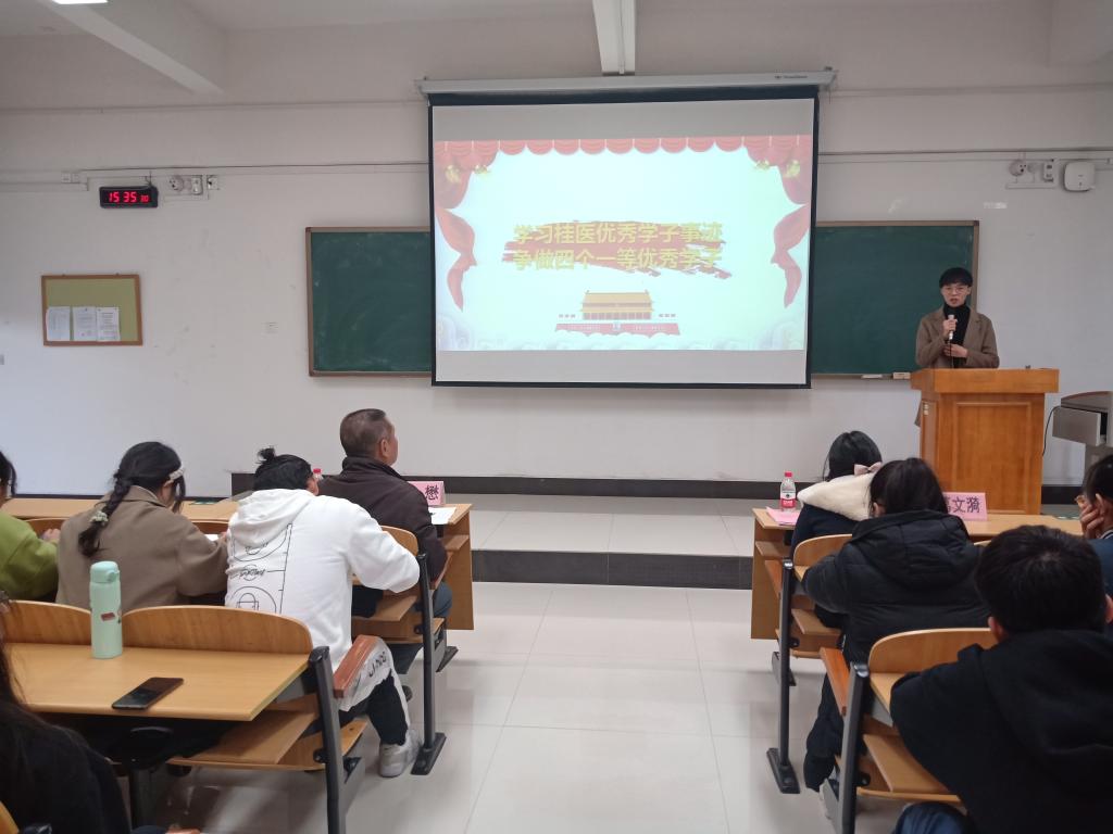 交流总结活动由导师联系对接学生李志慧担任主持。团支书首先总结了本学年秋季学期团支部工作,团员青年围绕思想引领、学业规划、实践教育、文体活动、身心健康等多方面开展了主题鲜明、形式各样的学习和活动,在理论学习和实践教育中彰显青春风采与青年担当。团支部通过观看微课视频回顾了党的十九届五中全会概况,团员代表和入党积极分子代表分别以“绿色发展”和“乡村振兴”为话题,表达了对全会精神的高度关注,表示要把个人理想融入党和国家事业中奋发前进。班委代表杨蒙分享了参观桂林博物馆的感受,她自豪于桂林深厚的历史底蕴和我校独具特色的人文景观,体味到文化熏陶之影响力。主持人播放团支部录制的学习体会剪影《新时代团员青年寄语新征程》,他们用生动的语言道出对党、对学校、对自己的期许。主持人通过展示我校2020年优秀学子事迹,带领团支部学习领会校党委书记黄照权在“生逢其时,矢志奋斗”形势政策报告上的寄语精神,争做四个一等优秀学子。优秀团干陈阳分享了学习经验并鼓舞大家要以桂医优秀学子作为目标,为成为德智体美劳全面发展的新时代优秀大学生而努力奋斗。最后,副院长辛懋为获得国家励志奖学金和柳州医药奖学金的学生颁奖,表彰在大一学年里取得佳绩的优秀学子。