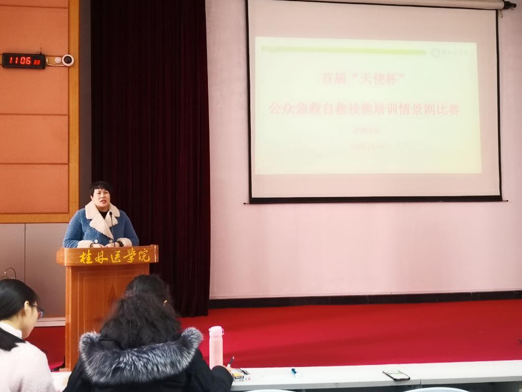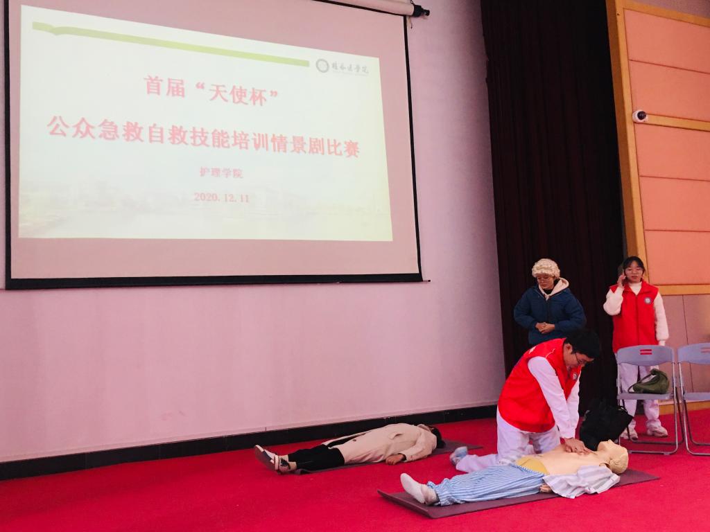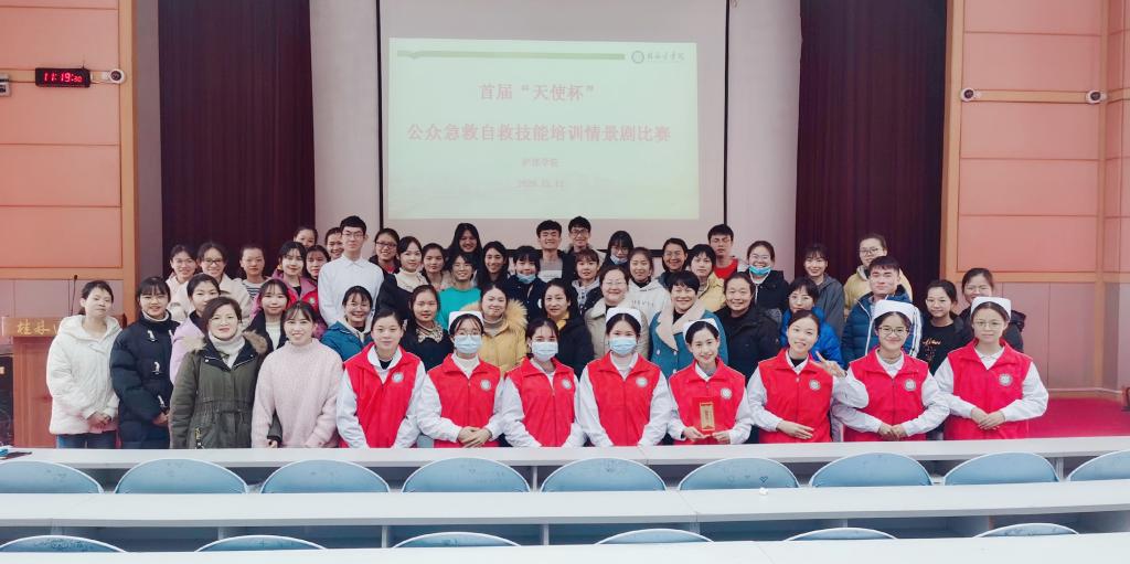 为了进一步宣传公众急救与互救知识与技能,检验学生公众自救与互救技术的实践能力,提升大学生在面对意外突发事件时的急救、自救、互救能力。近日,护理学院在东城校区多功能报告厅举办首届“天使杯”公众急救技术情景剧比赛。护理学院副书记谢勇志出席本次活动,种世桂、喻爱芳、韦艳春、何林炎、杨帆老师担任本次大赛评委,10支学生队伍参加大赛,70余名师生观摩本次活动。