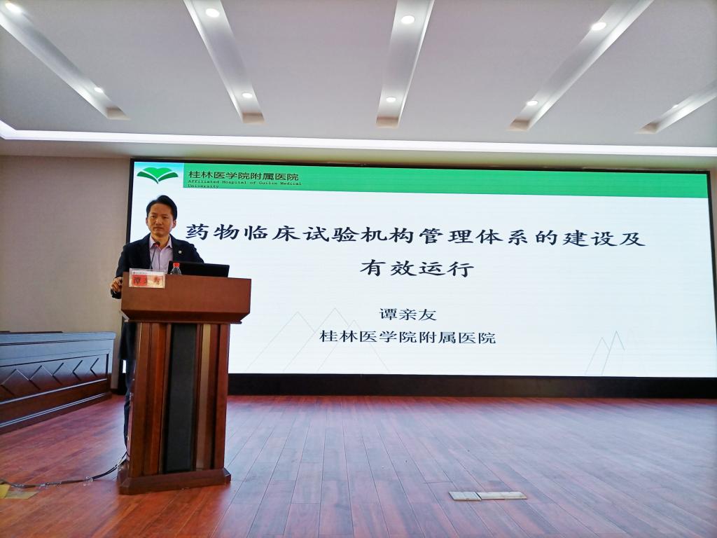 本次培训班由桂林医学院药学院副院长、临床药理研究所副所长、附属医院国家药物临床试验机构办主任、药物I期临床研究中心主任谭亲友,第二附属医院药学部主任、药物临床试验机构办主任黄桂红两位专家授课。