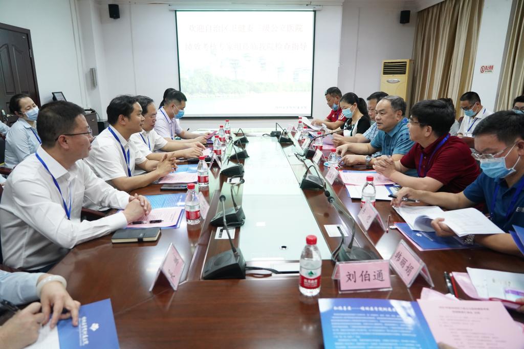 5月11日下午,由自治区卫生健康统计信息中心主任杨光业为领队的自治区卫健委2020年度三级公立医院绩效考核专家组到附属医院进行现场检查。学校副院长、附属医院院长李清华,附属医院副院长蒋伟、总会计师张海峰及相关科室负责人全程陪同检查。