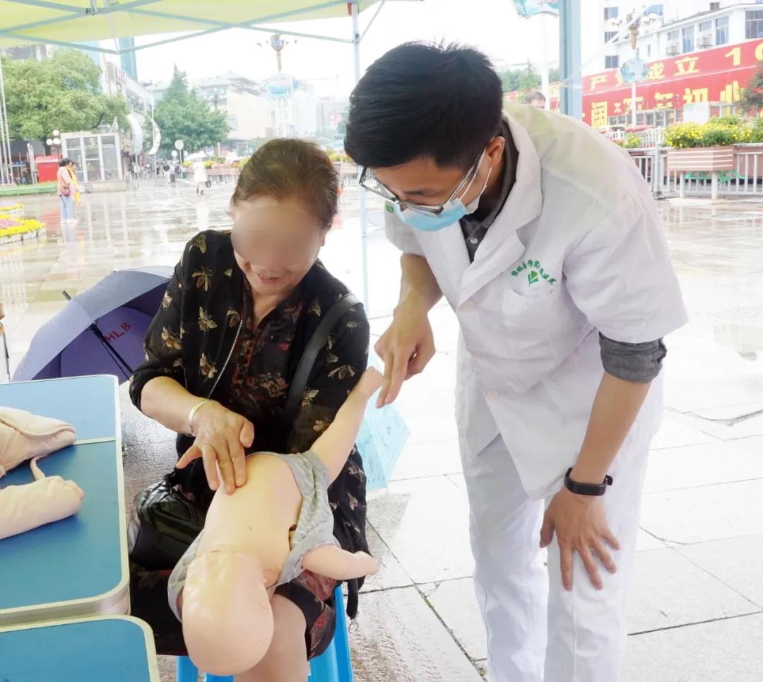 活动现场,护士陈继旗讲解的海姆立克急救法深受群众喜爱,多名群众纷纷实操学习该项技能。护理团队认真和耐心的态度得到大家的一致好评。