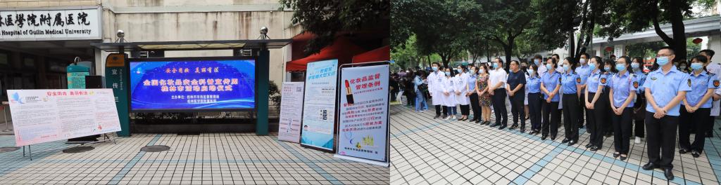 为进一步加强监管相关法规的宣贯落实,引导消费者科学合理地使用化妆品,以“学史力行,我为群众办实事”实践活动为契机,5月25日上午,桂林市“全国化妆品安全科普宣传周”活动启动仪式在桂林医学院附属医院门诊楼前广场举行。桂林医学院附属医院副院长蒋伟,桂林市市场监督管理局副局长张进、市局各相关科室、检查分局、桂林药品不良反应检测中心、12315指挥中心及各城区局派员,桂林医学院附属医院皮肤科及相关科室医务人员等出席启动仪式。启动仪式由附属医院皮肤科主任黄熙主持。