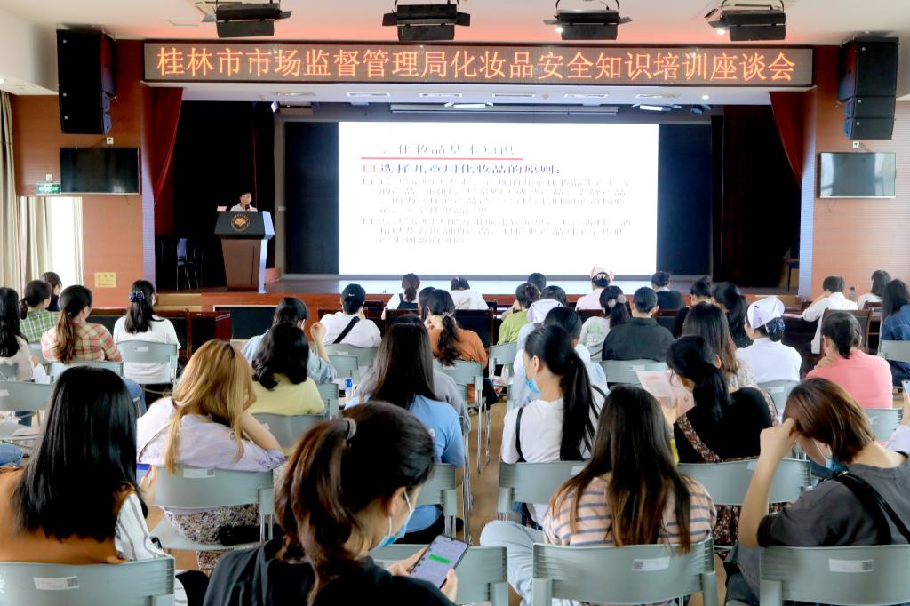 近年来,随着人民生活水平的提高,化妆品市场规模日趋壮大,如何科学选择化妆品成大家关心的问题。5月25日下午,附属医院在综合楼多功能厅为市民举办了化妆品安全知识交流座谈会,邀请了桂林市食品药品安全信息监控与不良反应监测中心雷萍为市民讲解化妆品常识、使用误区和如何合理使用化妆品等知识,并就化妆品安全选购和使用、不良反应等进行现场交流。