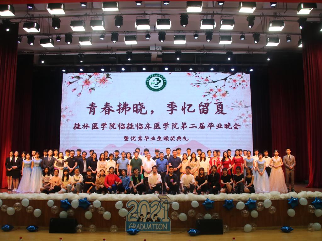 5月30日晚,临桂临床医学院第二届毕业晚会暨优秀毕业生颁奖典礼在大学生活动中心4楼报告厅精彩上演。第二附属医院(临桂临床医学院)党委副书记、纪委书记王群,党委副书记刘梦青,副院长袁晟光、王海鹏,中心实验室主任欧明林,各二级学院代表以及临桂临床医学院的全体师生齐聚一堂,共享一场难忘的视听盛宴。