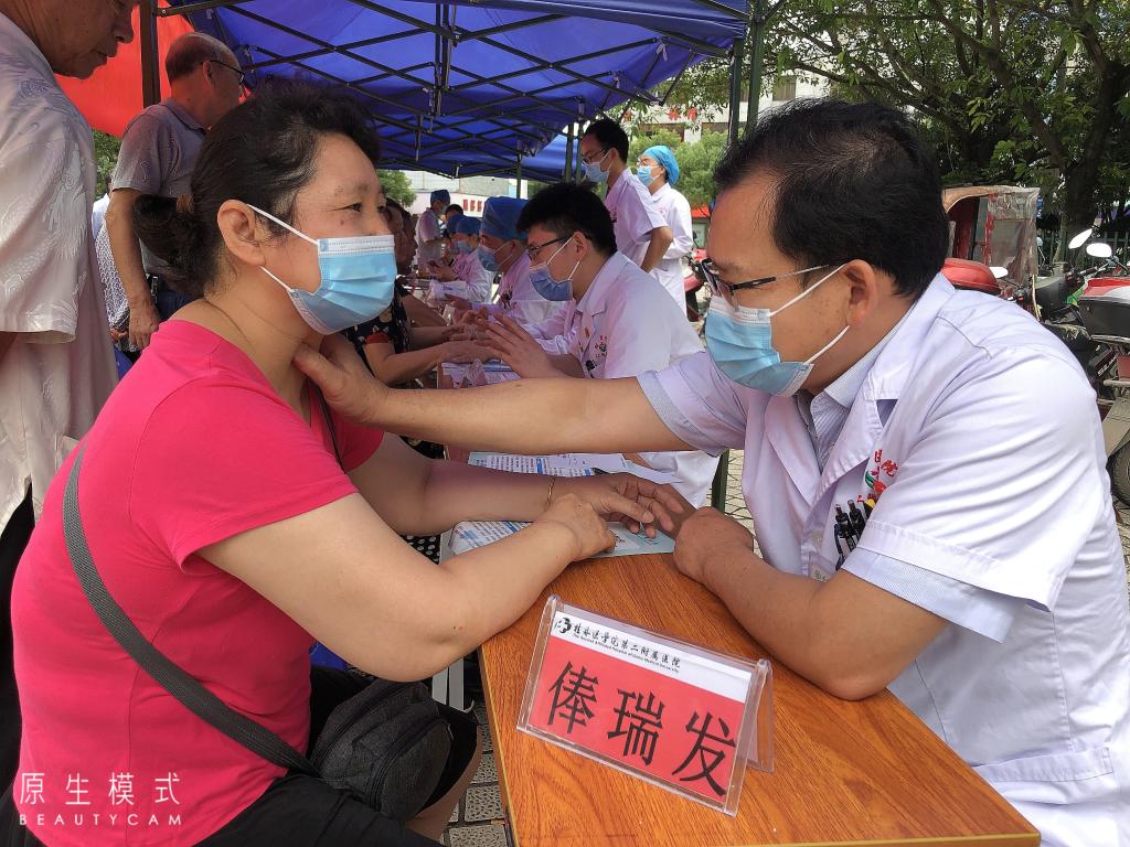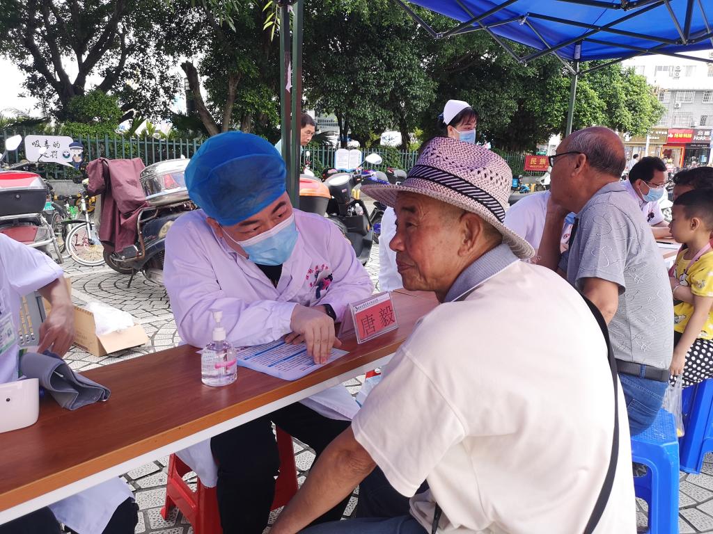 口腔科、脑血管病科、心内科、检验科的青年医务人员结合科室特色为群众提供现场看诊、咨询、疾病筛查、测血糖、量血压等惠民实事,此外,护理人员联同大学生志愿者为群众发放甲状腺、口腔、李家杰基金等宣传册,让群众充分了解医院惠民措施,将科普知识带回家。