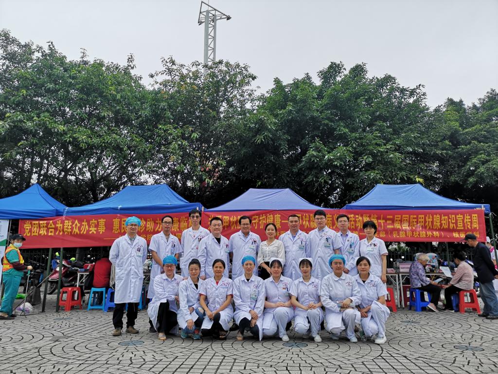 牢记使命不忘入党初心,青春献礼建党百年华诞。5月29日上午,由第二附属医院外科第一党支部联合团委组织的“党团联合为群众办实事暨第十三届国际甲状腺知识宣传周”惠民义诊活动在临桂区金山广场举行,义诊队伍由医院乳腺甲状腺外科、核医学科、口腔科、脑血管病科、心血管内科、检验科及大学生志愿者组成,近200名群众参与活动。