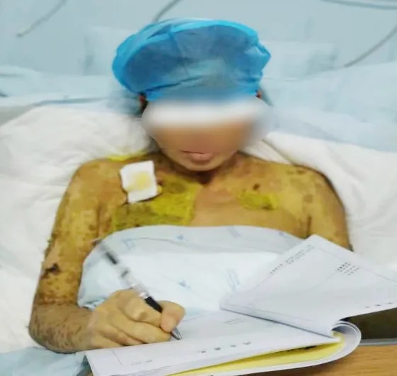 经重症医学科一病区医护人员精心救治和护理,患者病情得到了明显好转:慢慢的眼睛能睁开,嘴唇痂块脱落可以张嘴,自由言语与医护进行沟通,胃管可拔除,可经口进食。经过一周患者全身水泡逐渐结痂、脱痂,长出新皮肤。