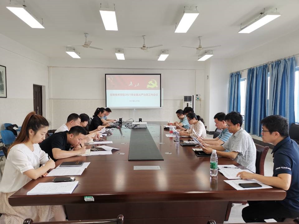 全面从严治党永远在路上。2021年,生物技术学院党委将牢记为党育人、为国育才的初心使命,不断夯实管党治党政治责任,持续提高管党治党工作水平,激励全体党员干部担当作为,激励广大师生团结一致,汇聚全院上下一起努力、一起加油、一起奋斗的磅礴力量,以优异的成绩向建党百年献礼。