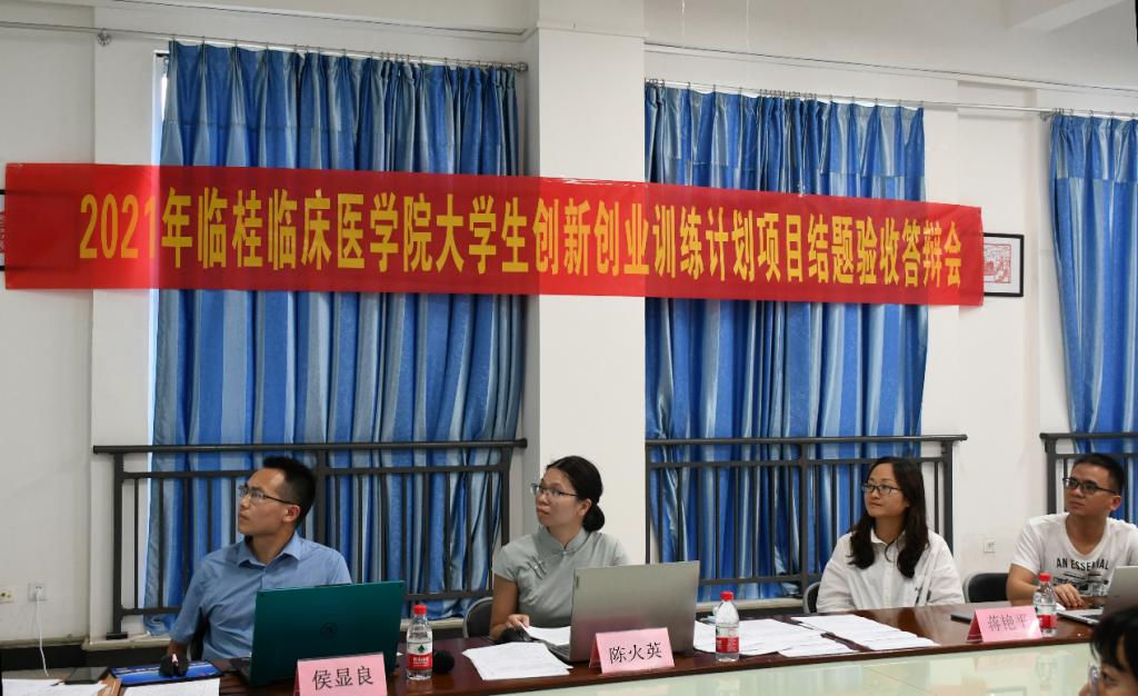 为加强对大学生创新创业训练计划项目的管理与指导,有效推进创新创业训练计划的实施,根据《桂林医学院大学生创新创业训练计划项目管理办法》(桂医教[2016]45号)文件精神,临桂临床医学院于6月11日下午在临桂校区大学生活动中心409举行2021年大学生创新创业训练计划项目结题。第二附属医院检验科副主任陈火英、中心实验室副主任侯显良担任本次报告会评委,临桂临床医学院学工办主任蒋艳平、指导老师陶树安老师出席活动。