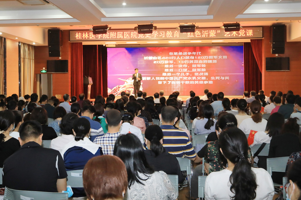为创新教育形式,丰富教育载体,进一步推动医院党史学习教育走深走实,6月16日下午,附属医院邀请了中共临沂市委党校鲁南分校“沂蒙精神”宣讲团,在医院综合楼多功能报告厅作题为《红色沂蒙》的专题艺术党课,以情景报告会的形式把党史学习教育搬上舞台,让医院的广大干部职工深入了解一段厚重、朴实、光荣的红色历史和沂蒙精神。