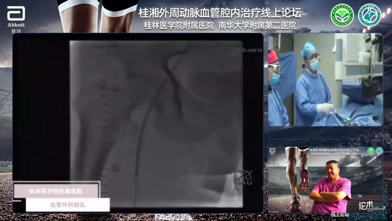 同时,附属医院血管外科和南华大学附属第二医院导管室为大家带来了4台精彩的外周动脉腔内手术直播。术后病人血管恢复血流,症状得以改善,手术获得成功。参会观众就手术展开了热烈的讨论,术者就观众的提问进行详细的讲解。