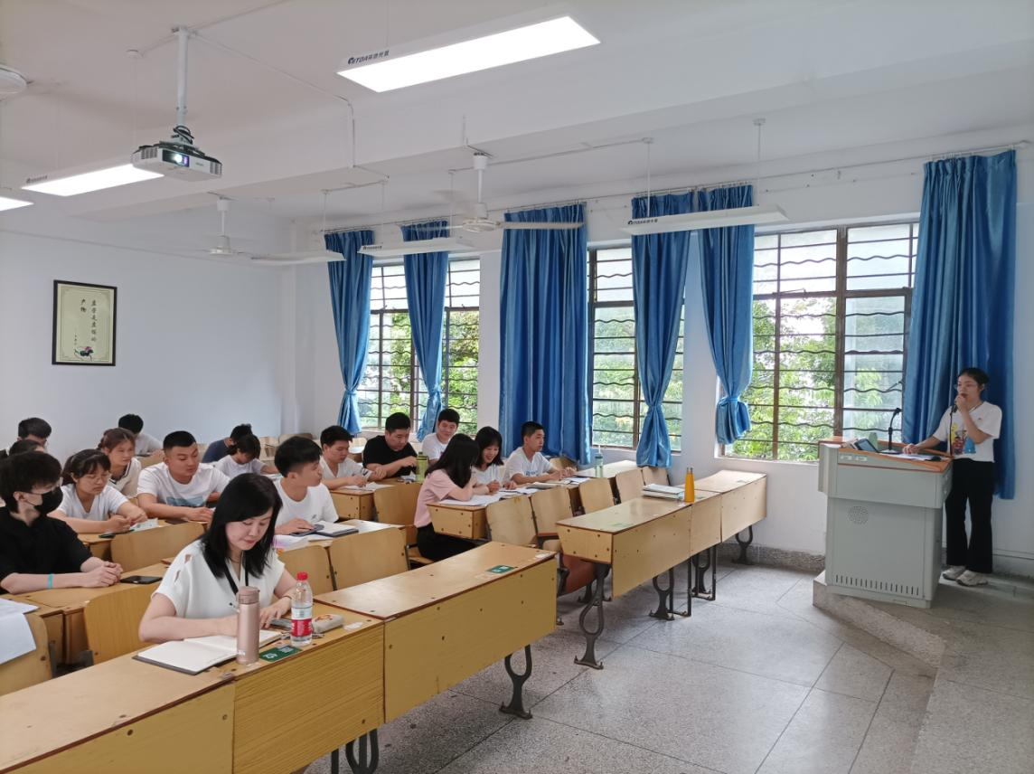 (支部成员甘燕媚领学,党员在认真听讲)