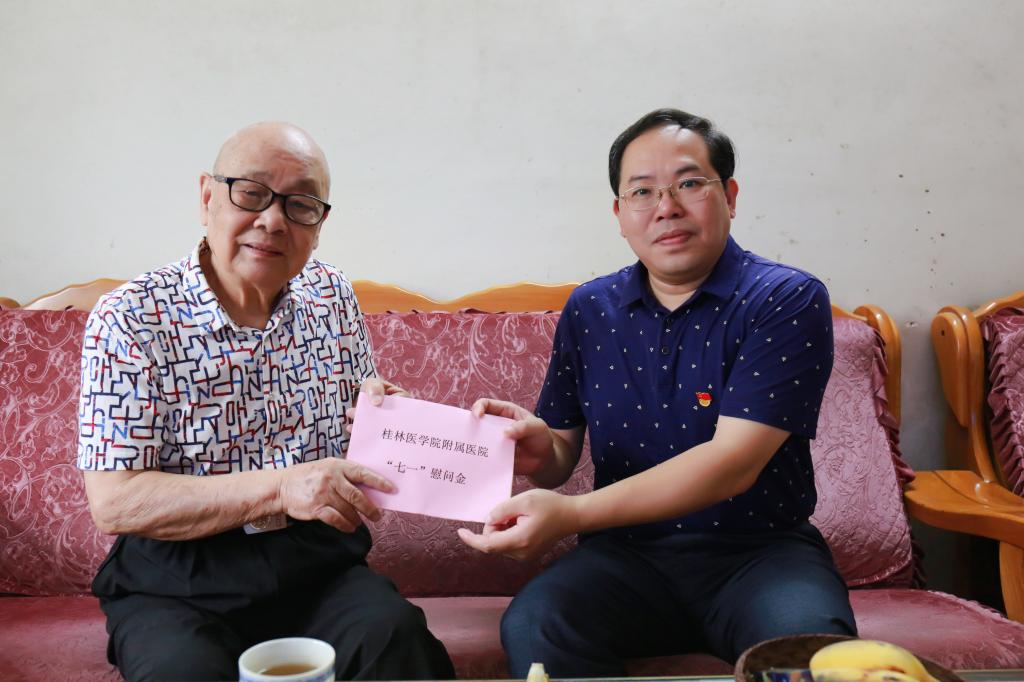 今年是中国共产党建党100周年。在“七一”来临之际,附属医院领导走访慰问赖素云等20名老党员、困难党员及乡村振兴工作队员,向他们送去党的温暖和关怀,并致以节日问候和祝福。