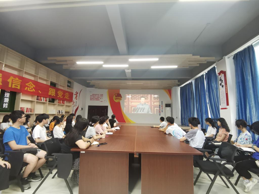 7月1日上午,庆祝中国共产党成立100周年大会在北京隆重举行,校团委全体成员和学生团员代表在大学生活动中心209观看直播。