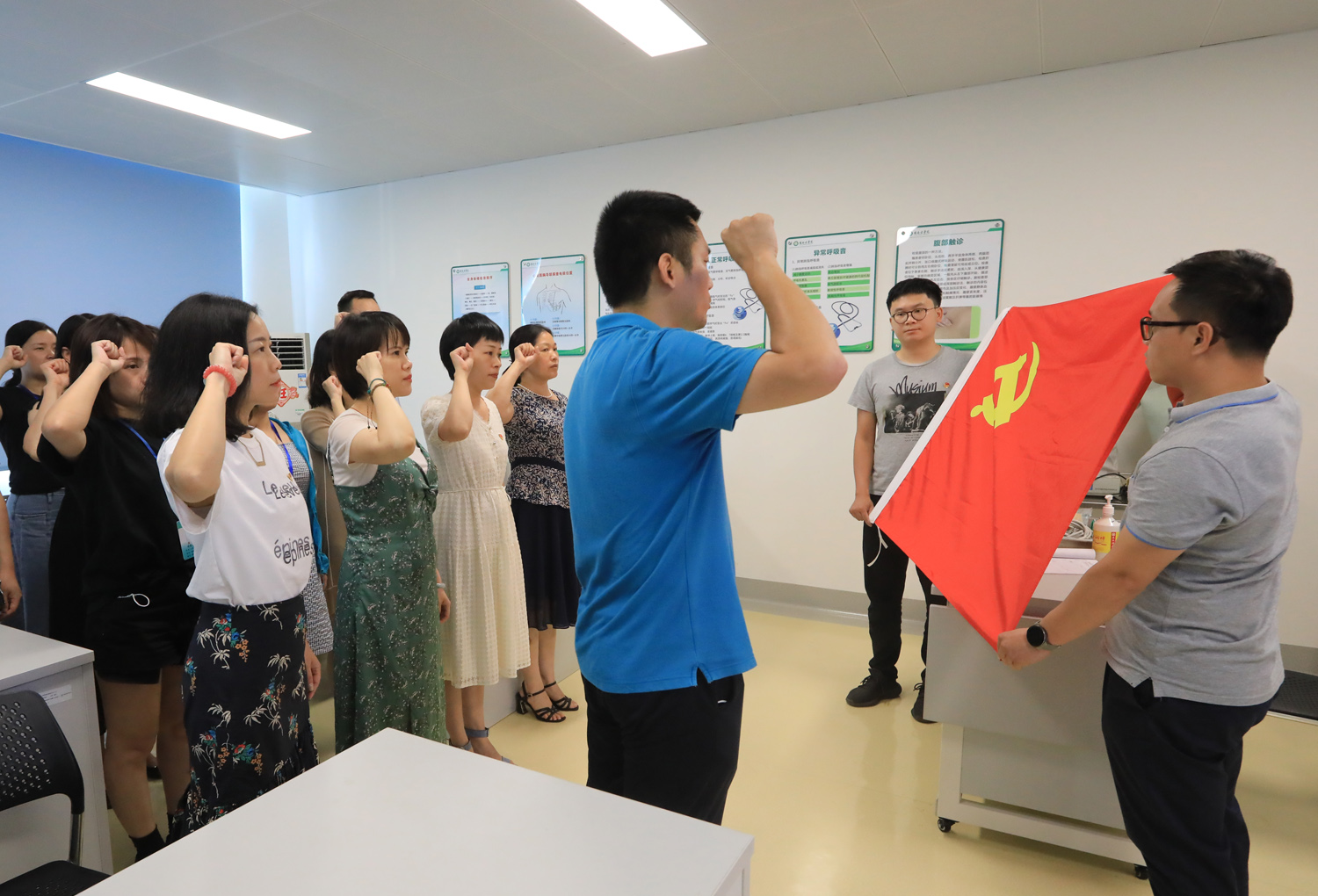 今年是中国共产党成立100周年,为了让广大党员不忘入党初心,牢记对党的承诺,桂林医学院附属医院党委组织各党支部开展党史教育重温入党誓词活动。