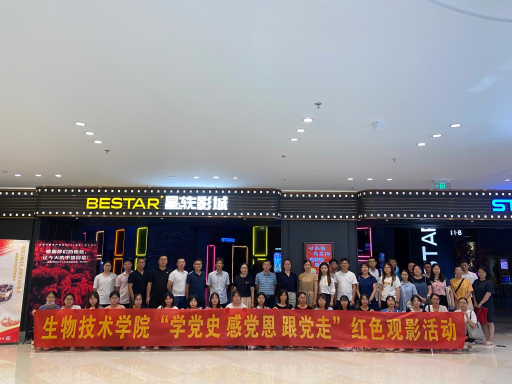 为庆祝建党100周年,深入推进党史学习教育,7月7日,生物技术学院党委在吾悦广场星轶影城组织开展“学党史、感党恩、跟党走”红色观影活动,重温红色记忆,传承革命精神。学院师生党员、党外代表人士、民主党派人士近50余人一同观看献礼建党100周年影片《革命者》。
