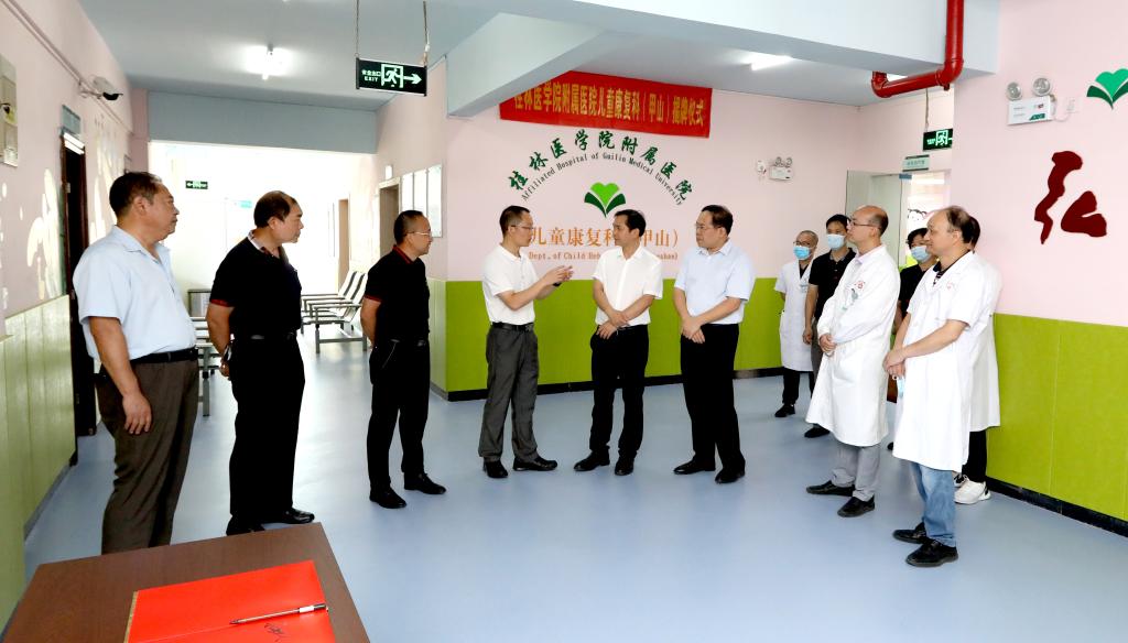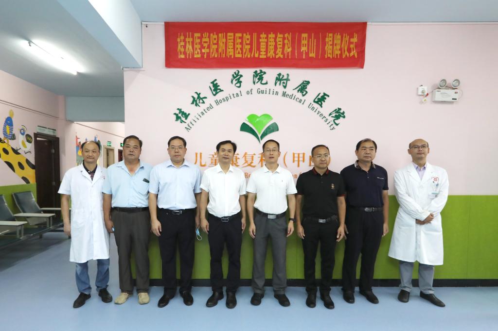 7月9日上午,桂林医学院附属医院与秀峰区共建的甲山社区卫生服务中心儿童康复科揭牌仪式在甲山社区卫生服务中心举行。桂林医学院副院长、附属医院院长李清华,秀峰区委副书记、副区长(主持政府工作)刘丰华,秀峰区副区长王洋,附属医院副院长蒋伟,秀峰区卫健局局长莫文华,以及秀峰区政府办公室、附属医院院办、医联体办公室、儿童康复科以及甲山社区卫生服务中心负责人出席揭牌仪式。仪式由王洋主持。