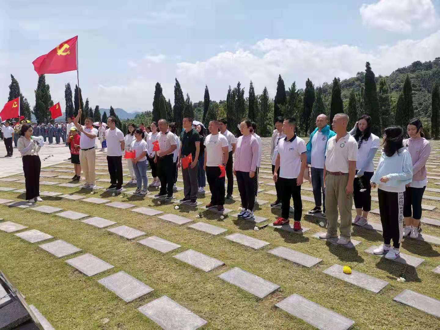在凭吊广场,全体党员怀着无比崇敬的心情向在革命烈士默哀鞠躬并敬献鲜花,重温入党誓词。穿过纪念石林,聆听一段段悲壮的英雄史诗,寄托对革命烈士的深切哀思,深切缅怀在湘江战役中舍生忘死、英勇牺牲的红军英烈。