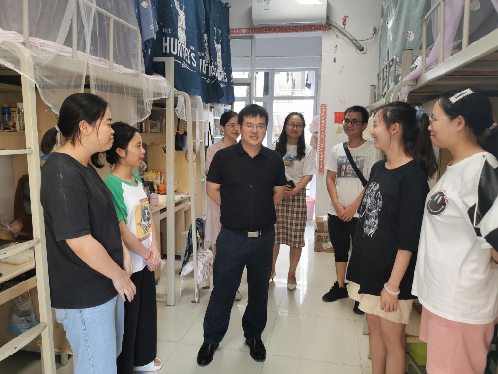 此次检查主要为学生宿舍的安全隐患排查,重点检查宿舍是否已断水断电、是否关好门窗以及是否存在安全隐患等情况,同时查看宿舍卫生情况。检查时,刘梦青与学生亲切交谈,询问了解学生考试情况,对学生感到困难的学科,他给出了一些学习方法和意见。针对在检查过程中出现的问题,刘梦青强调,要把检查出来的宿舍问题及时整改、上报和维修,为学生营造一个安全、温馨的宿舍环境,要做好离校安全教育工作,不断加强学生的安全意识。