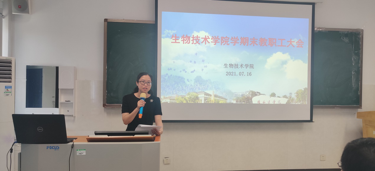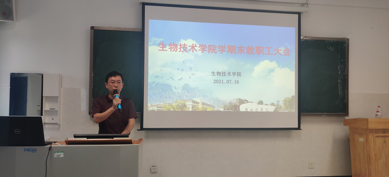 7月16日上午,生物技术学院在生技楼404教室召开期末教职工大会,并在会后开展了安全卫生大检查。院长孙立元主持大会。