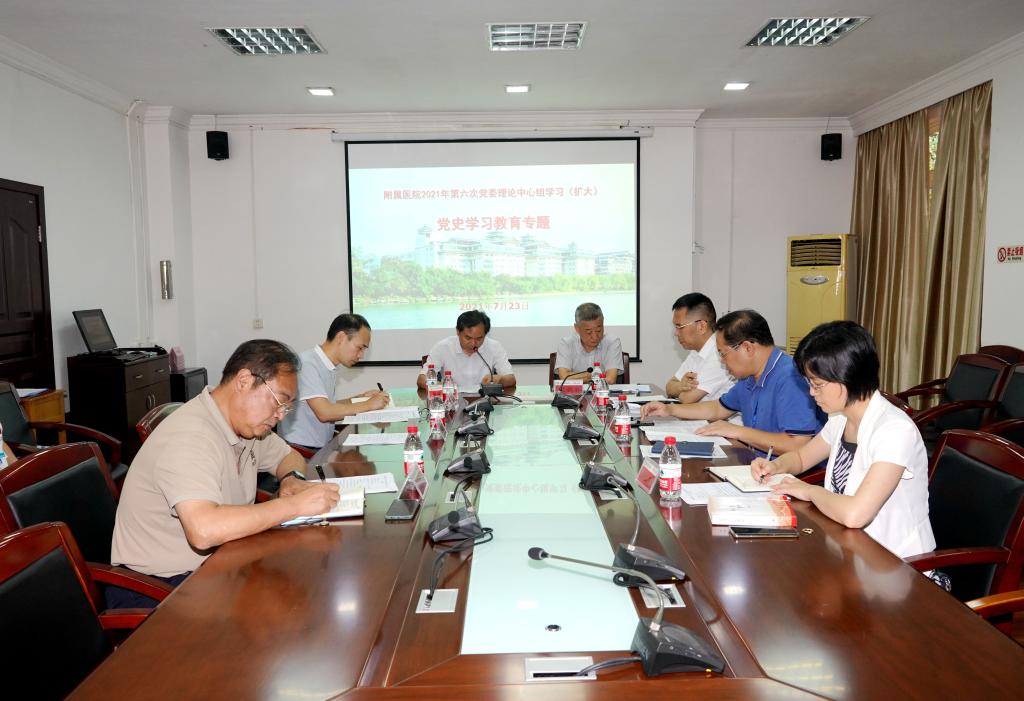 7月23日上午,附属医院在行政楼会议室举行2021年第六次党委理论中心组学习会。医院党政领导班子、党委委员和党口职能部门负责人参加学习,医院党委书记宋剑非主持学习会。