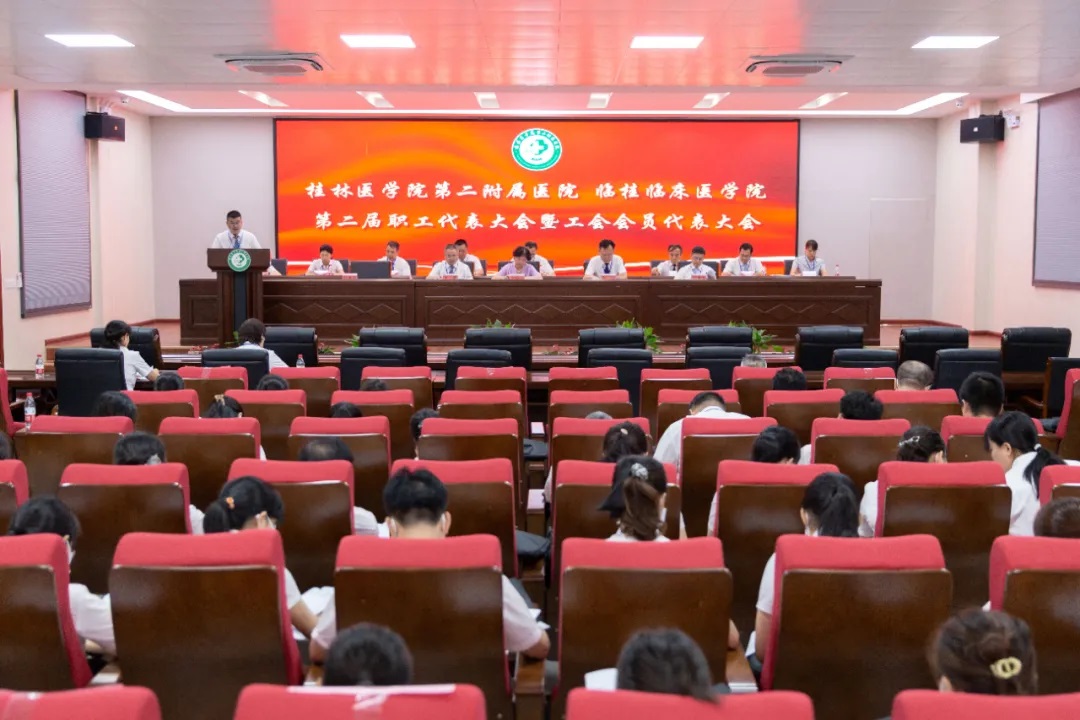 医院党政领导班子全体成员、正式代表、列席代表和特邀列席代表,以及临桂区总工会党组成员易运德、桂林医学院工会常务副主席谢恒出席大会。会议期间,代表们建睿智之言,献务实之策,共商医院改革发展大计。会议由医院党委副书记、工会主席刘梦青主持。