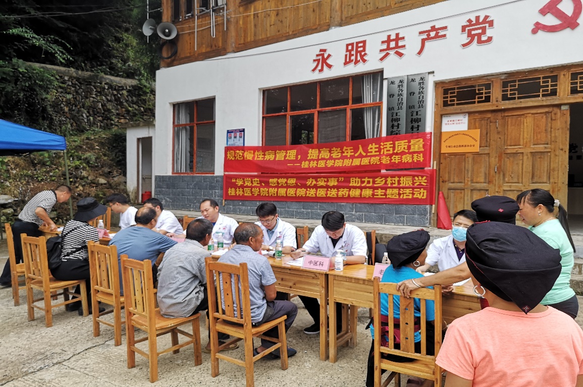 近几年,桂林医学院附属医院积极响应国家号召,定期开展健康扶贫和送医送药义诊活动。特别在党史学习教育期间,医院民主党派与广大党员一起深入学习党史,心往一处想,劲往一处使,在“我为群众办实事”活动中画出最大同心圆。此次中共党员、民主党派组成的医疗义诊团队深入边远山区、困难家庭进行疾病筛查、免费义诊,让优势医疗资源下沉到最基层,让老百姓足不出户就能享受到三甲医院专家的诊疗服务。