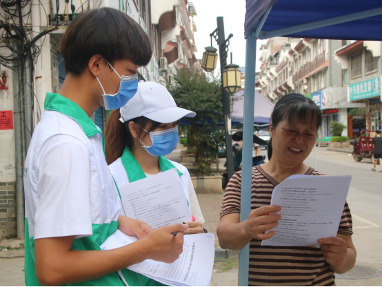 医共体认知调研组的成员走上街道,针对乡镇居民对县域医共体实施的认知情况,对六塘镇居民开展问卷调查。本次问卷调查遵循随机性的原则,调查对象年龄跨度大,范围覆盖广,职业领域多。在调研的过程中,组员们也进一步加深了对国家施行医共体政策的理解,并向更多当地居民宣传了医共体的概念。