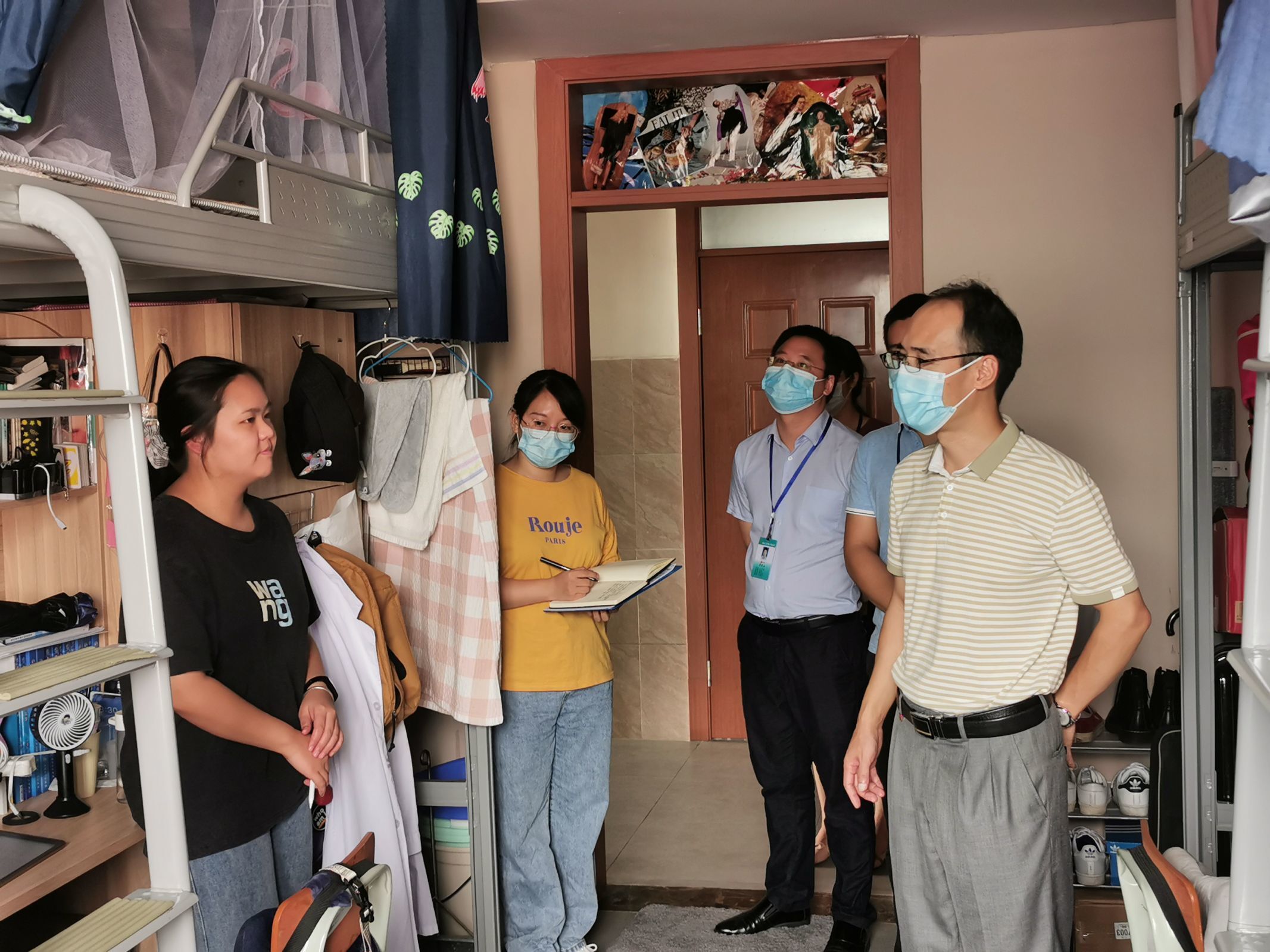 为深入贯彻落实自治区关于校园安全工作的部署,推进全区校园消防安全专项行动,为学校开学复课营造良好的安全、卫生环境,9月8日,临床医学院党委副书记王海平及学工办全体辅导员、部分班主任对临桂校区、乐群校区学生宿舍开展新学期安全、卫生检查工作。