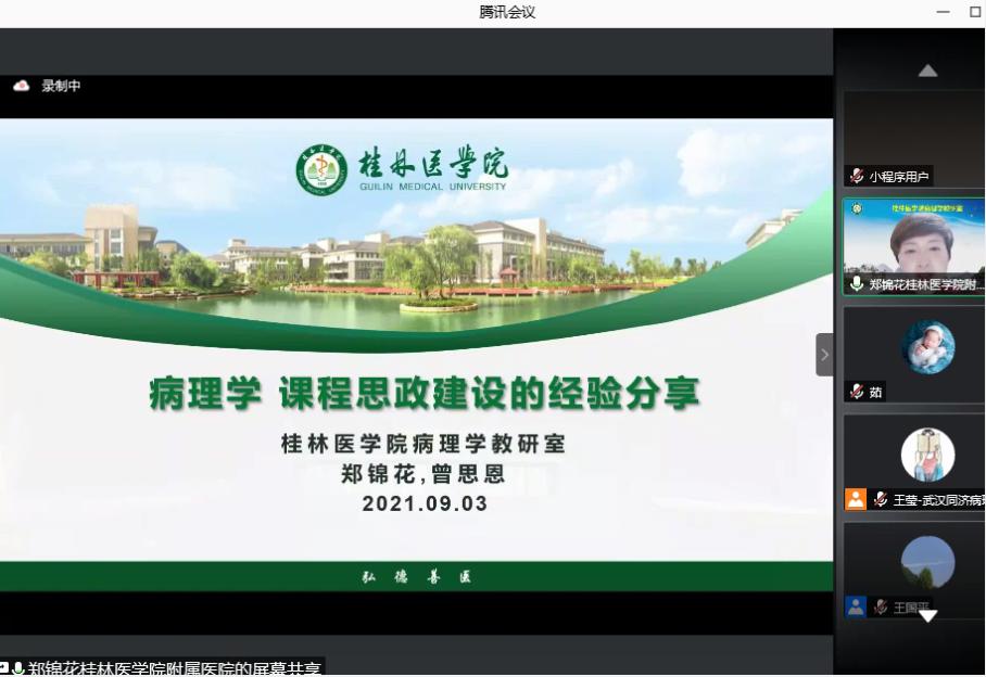 9月3日,由中华医学会病理学分会及病理学教学学组主办,华中科技大学同济医学院病理系/武汉同济医院病理研究所承办的“病理学课程思政建设研讨会”在线上召开。本次会议的主题为“病理学课程思政建设——如何将课程思政融入病理学教学课堂”。会议特邀请附属医院病理科副主任郑锦花教授参加并在会上做“病理学课程思政建设的经验分享”专题讲座。本次会议线上参会人员达500多人。