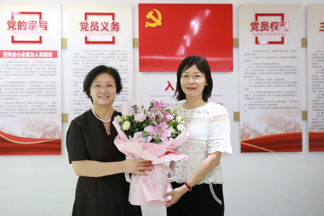 文琼仙,葛波等院领导分别为教师代表们送上鲜花,并与他们一一进行合影。