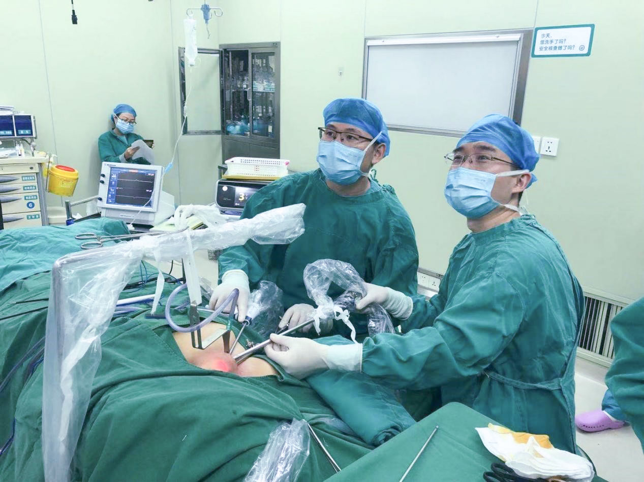 经过术前与患者充分沟通和全面评估,制定了周密的手术方案。在俸瑞发指导下,由刚从浙江大学邵逸夫医院及浙江省人民医院进修学习归来的王桂林副主任医师、周举仕主治医师主刀,成功为患者实施了锁骨下小切口全腔镜甲状腺癌根治术,手术仅历时50分钟。