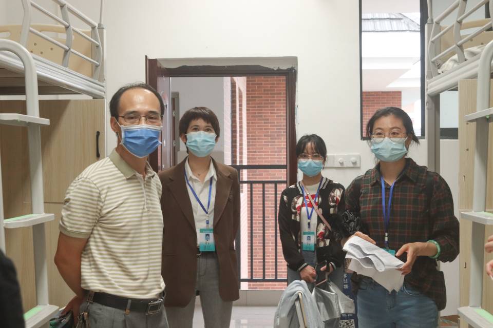 走访过程中,王海平与新生亲切交流,倾听学生的心声,了解新生报到入住宿舍情况,询问新生入学后是否对学校有初步了解、是否知道快递站点以及超市等必要地点,对新生进行了亲切的问候,同时叮嘱同学们在校做好个人防护,如有特殊情况需要及时与辅导员汇报。