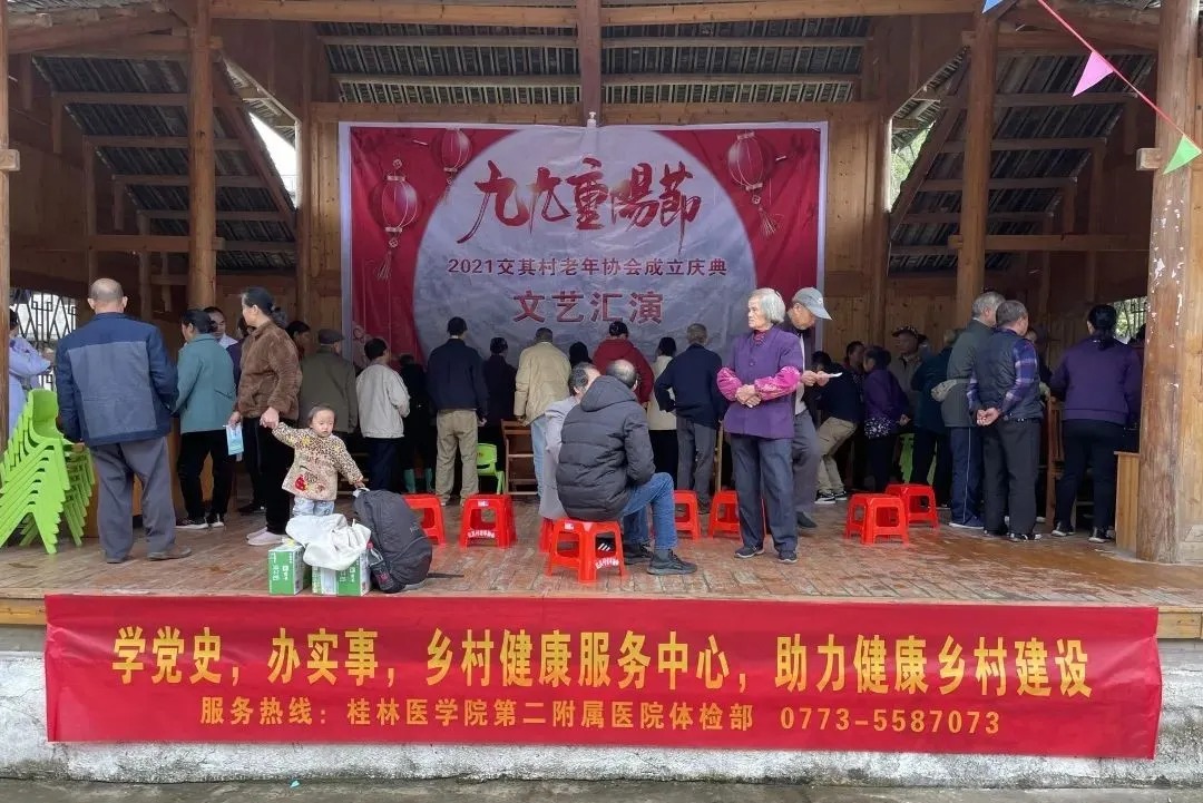 交其村地处山区,交通极为不便,为了更好地让优质医疗资源下沉,让村里老百姓足不出户就能享受到三甲医院专家的诊疗服务,桂林医学院第二附属医院除了在该村派驻第一书记外,近年来每年都坚持来健康义诊送医送药。