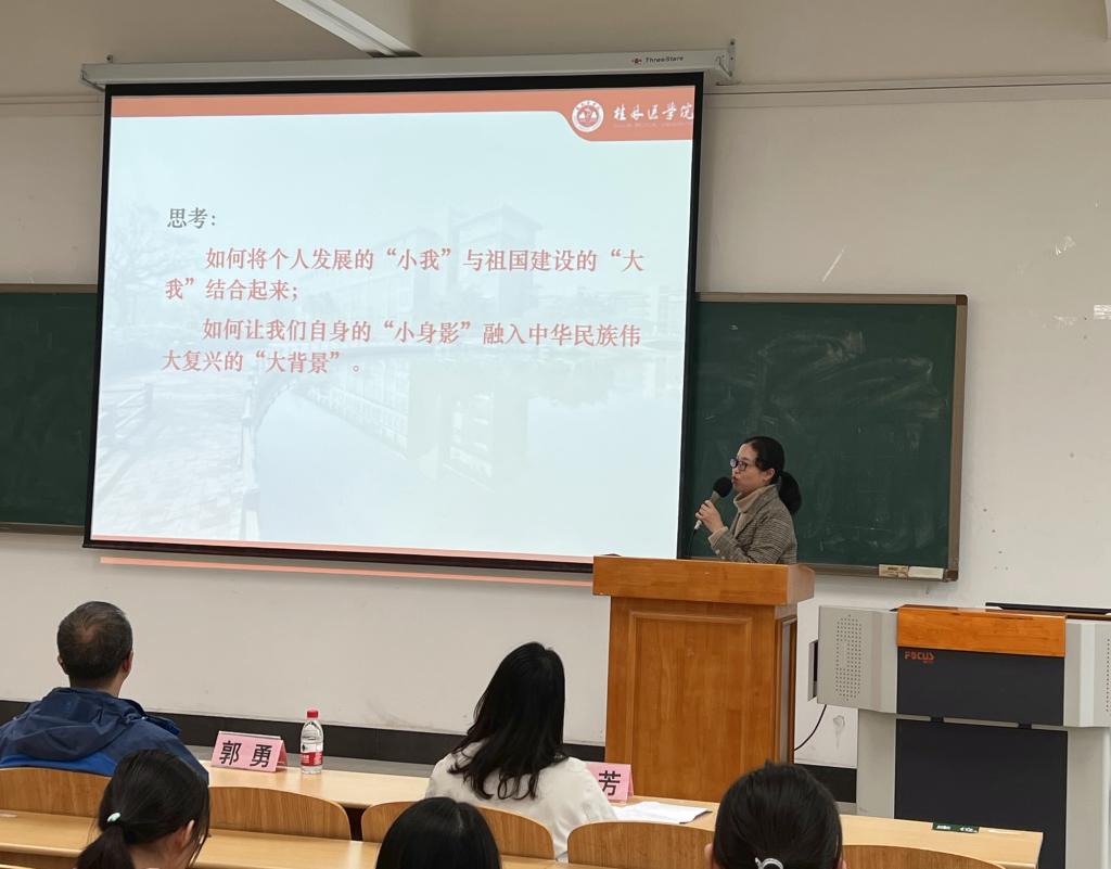 麦婕以《明责任 勇担当 我与祖国共奋进》为题,从建校发展历程讲起,介绍了学校的发展沿革、育人理念、校训校歌等,一幅饱含时代精神的历史画卷徐徐展开,使新生们深刻理解并融入其中,切实体悟到“弘德善医”的校训精神;她号召新生们树立责任担当,立足时代发展,心怀“国之大者”,将个人之小我融入祖国之大我、人民之大我中去,努力成为堪当民族复兴重任的时代新人。