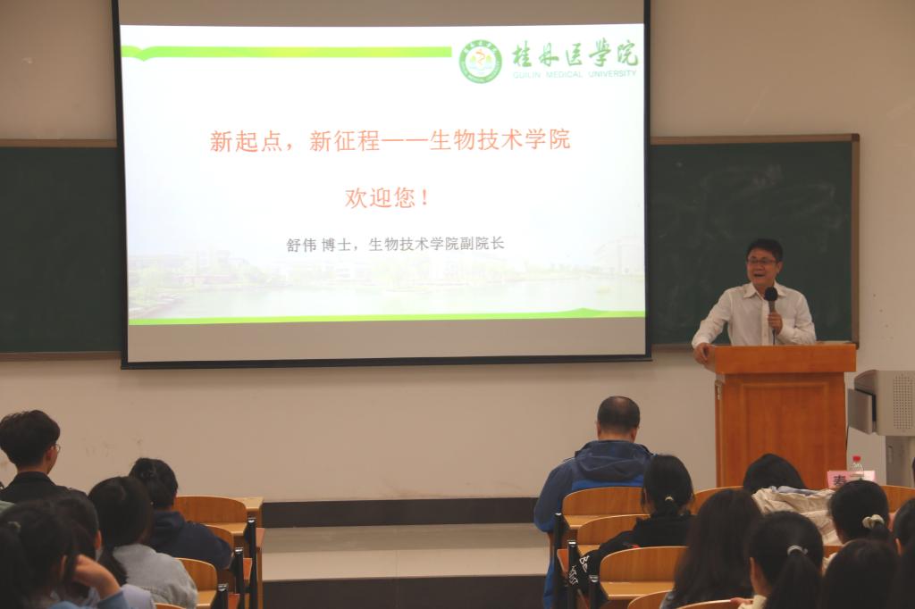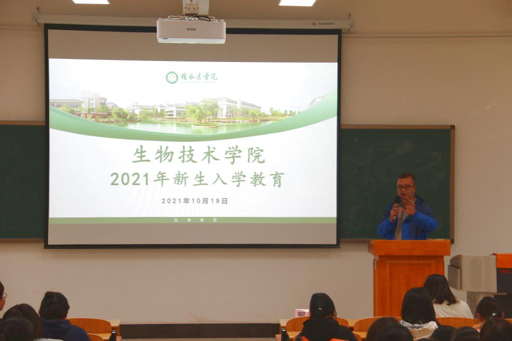 为帮助新生树立正确的理想信念,增强爱校荣校意识,加强专业思想启蒙,10月19日至24日,生物技术学院在临桂校区教学北楼开展了2021级新生入学教育系列讲座活动。学院党委书记麦婕、院长孙立元、党委副书记秦芳、副院长舒伟、学工办主任金罗成、生物医学工程教研室主任郭勇、人文与管理学院医学信息工程教研室教师胡俊承分别为新生们进行专题授课。秦芳主持本次系列讲座活动。