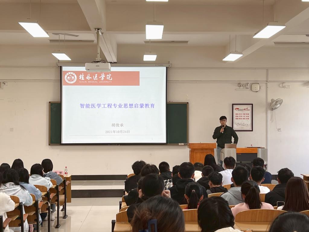 胡俊承从国家战略发展需求为切入点,向新生们介绍了智能医学工程专业的发展趋势和学科特点,重点从“互联网+医疗健康”、“人工智能+医疗健康”等方面讲解了新医科“面向医科、医工融合”的发展特色,并在升学和就业方面给新生们提出了中肯的建议和意见。