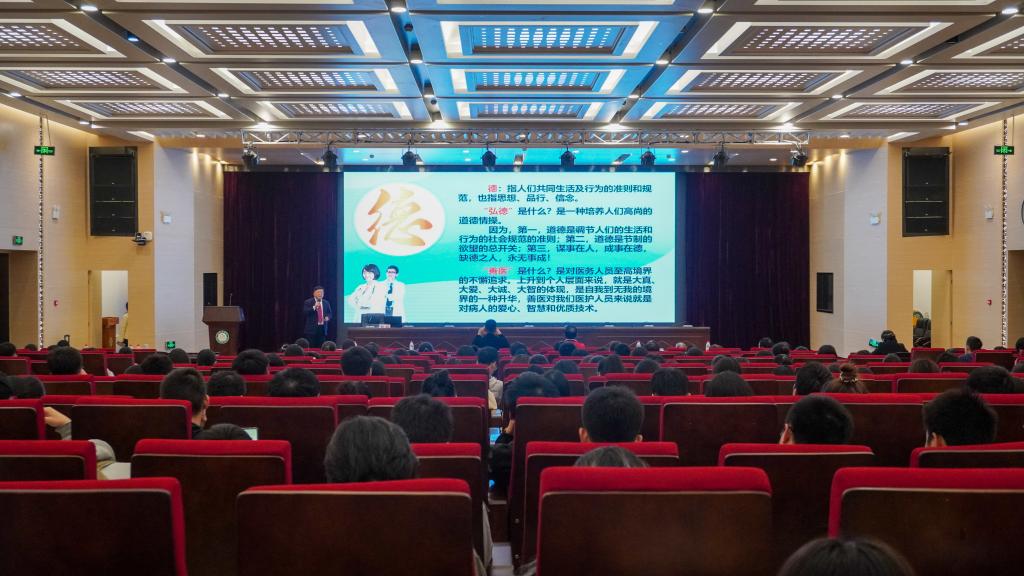 报告会上,黎明先生首先给同学们阐述了我校校训所蕴含的深层含义,通过讲述毛泽东的家国情怀和青年德育的理念以及对知青文化的践行,表达了自己的人生信仰和追求,教导学生必须树立正确的价值导向,建立家国情怀,践行校训,做一名弘德善医的医生。接着他结合自己“成长—成才—成功”的人生历程,给大家生动阐释了如何坚守“弘德善医”成为一名弘德善医的医生,给大家指出了努力的方向。最后黎明先生及在场校友与同学们进行了互动交流,就同学们的提问做了解答并给出了宝贵的建议。