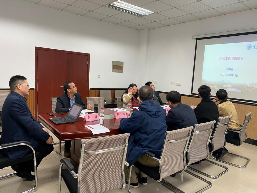 为进一步提高生物技术学院学科和专业建设水平,10月29日上午,生物技术学院院长孙立元及生物医学工程教研室骨干教师一行五人赴重庆大学生物工程学院进行交流访问。重庆大学生物工程学院院长蔡开勇、副院长候文生、生物医学工程教研室主任胡宁及骨干教师出席交流会。