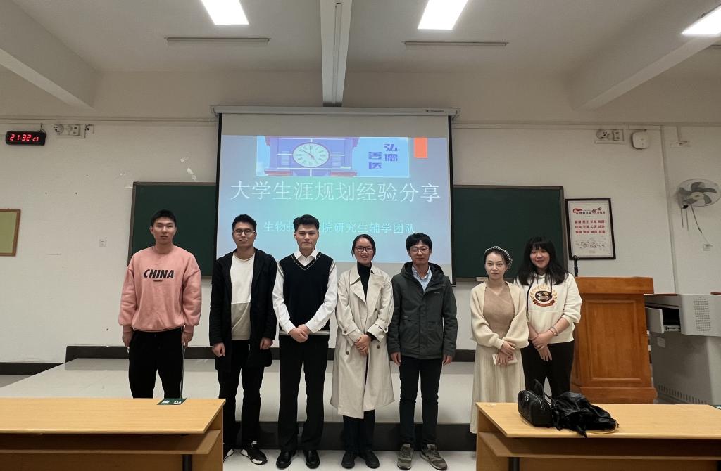 为营造良好的学习氛围,促进优良学风建设,引导本专科生进行合理的学业规划,10月31日晚,生物技术学院在教学北楼403教室举办了大学生涯规划经验交流会。学院党委副书记秦芳、团委副书记李思婧、研究生辅导员黄日镇出席会议,学院研究生“辅学”团队4名研究生代表及2020级、2021级全体本专科生参加会议。