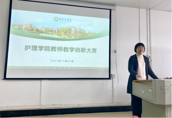 为引导学院教师潜心教书育人,形成卓越教学的价值追求,2021年11月2日下午,护理学院在东城校区科教楼532室成功举办高校教师教学创新大赛。护理学院党委书记、院长莫碧文为比赛致辞,指出创新是教学的灵魂,希望老师们以赛促改,不断提升教学质量。护理学院副院长高燕及学院全体教师参加了此次大赛。马克思主义学院王强芬教授、2019级本科班5名学生及部分专任教师担任评委。