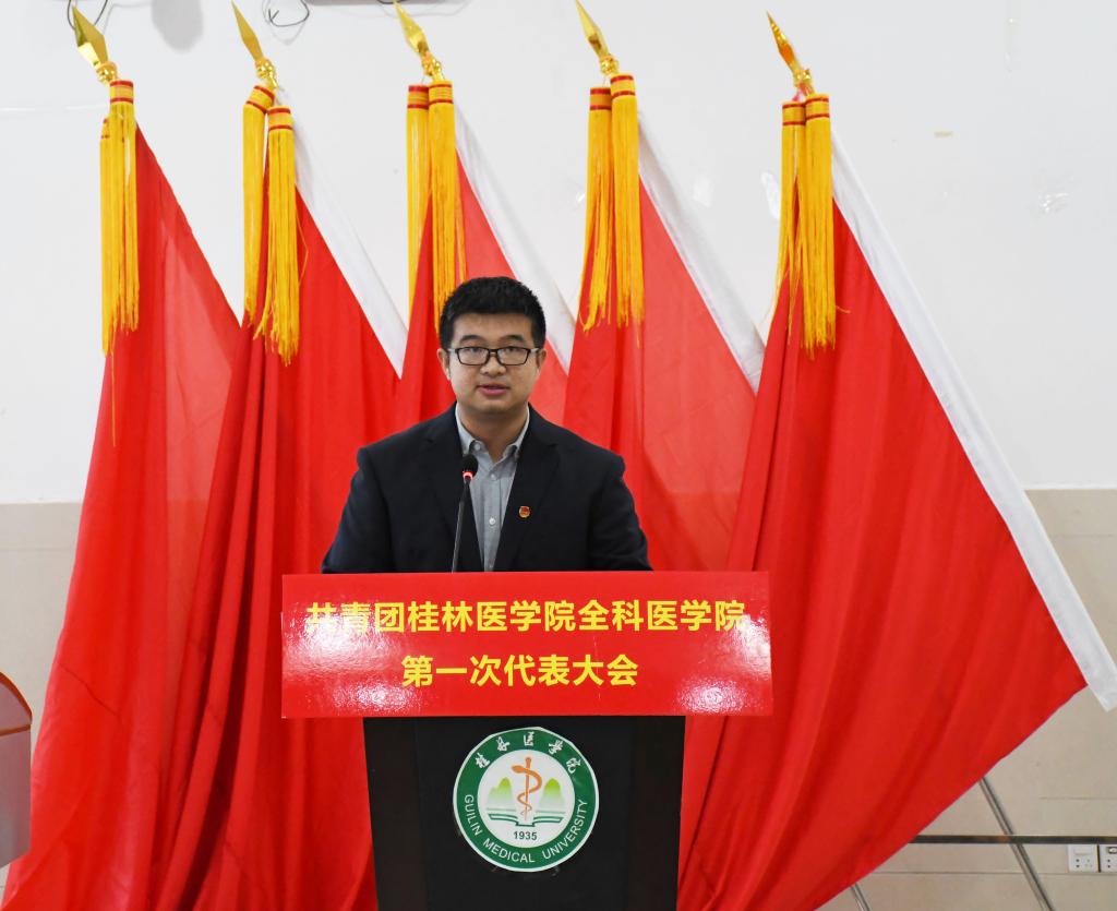 陈辰作共青团桂林医学院全科医学院委员会工作回顾与总结,明确在接下来的团委工作中紧紧团结团员青年,以构建和谐校园为核心,加强团员思想政治教育,以提高人才培养质量为目标,提升学生服务基层综合能力,打造求真务实的学生干部队伍,以服务为先的理念,不断加强团的自身建设。