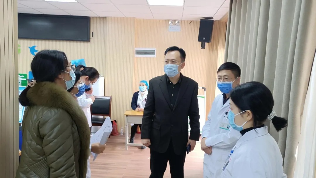 文琼仙、葛波、李玉春一行现场查看了新冠疫苗接种流程,听取了相关工作汇报,详细询问了医护人员配备、接种人数、应急处置等情况,对疫苗接种工作给予充分肯定并要求医护人员严格按照规定执行所有流程和操作,确保接种工作安全、顺利开展。