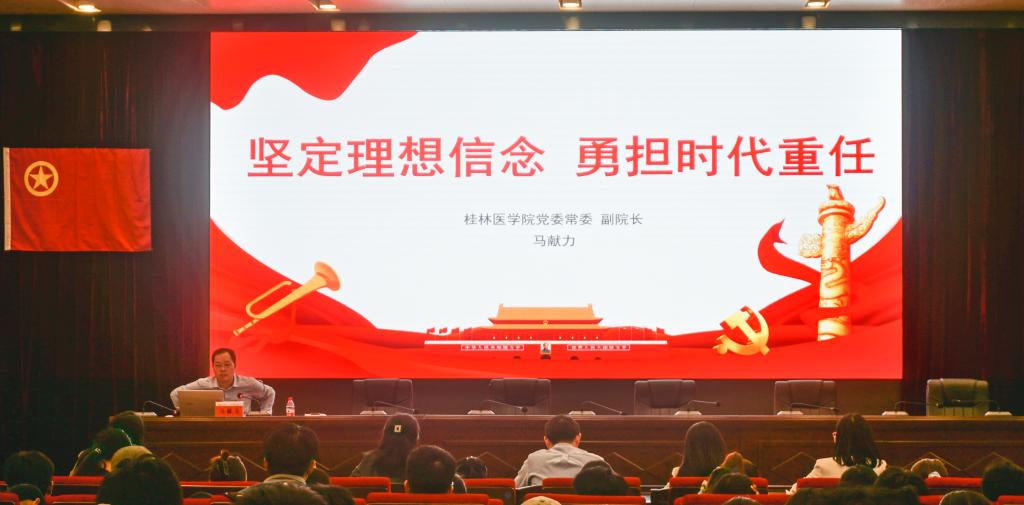 11月6日,学校党委常委、副院长、组织部部长马献力为开班仪式致辞并为全体学员作了《坚定理想信念,勇担时代重任》的主题报告。他鼓励桂医青年勇担重任、砥砺前行,要在科学理论的学习和深化中树立科学的价值导向,用习近平新时代中国特色社会主义思想武装头脑;要深刻领悟和学习中华优秀传统文化、革命文化和社会主义先进文化,坚定文化自觉和文化自信;要勤学苦练真本领,掌握专业技能、增强创新能力、占领学术前沿,努力推动我国科技事业创新发展。