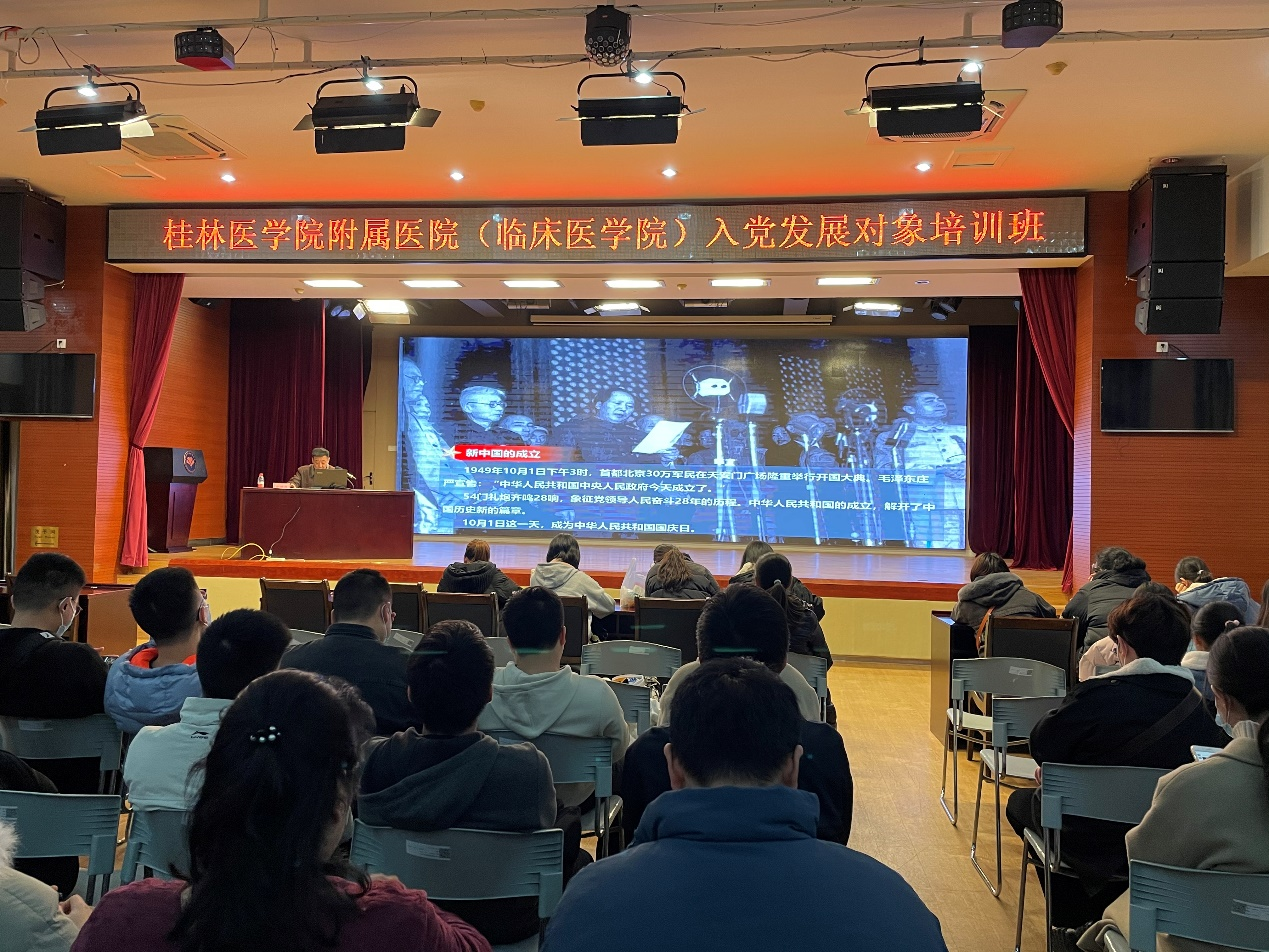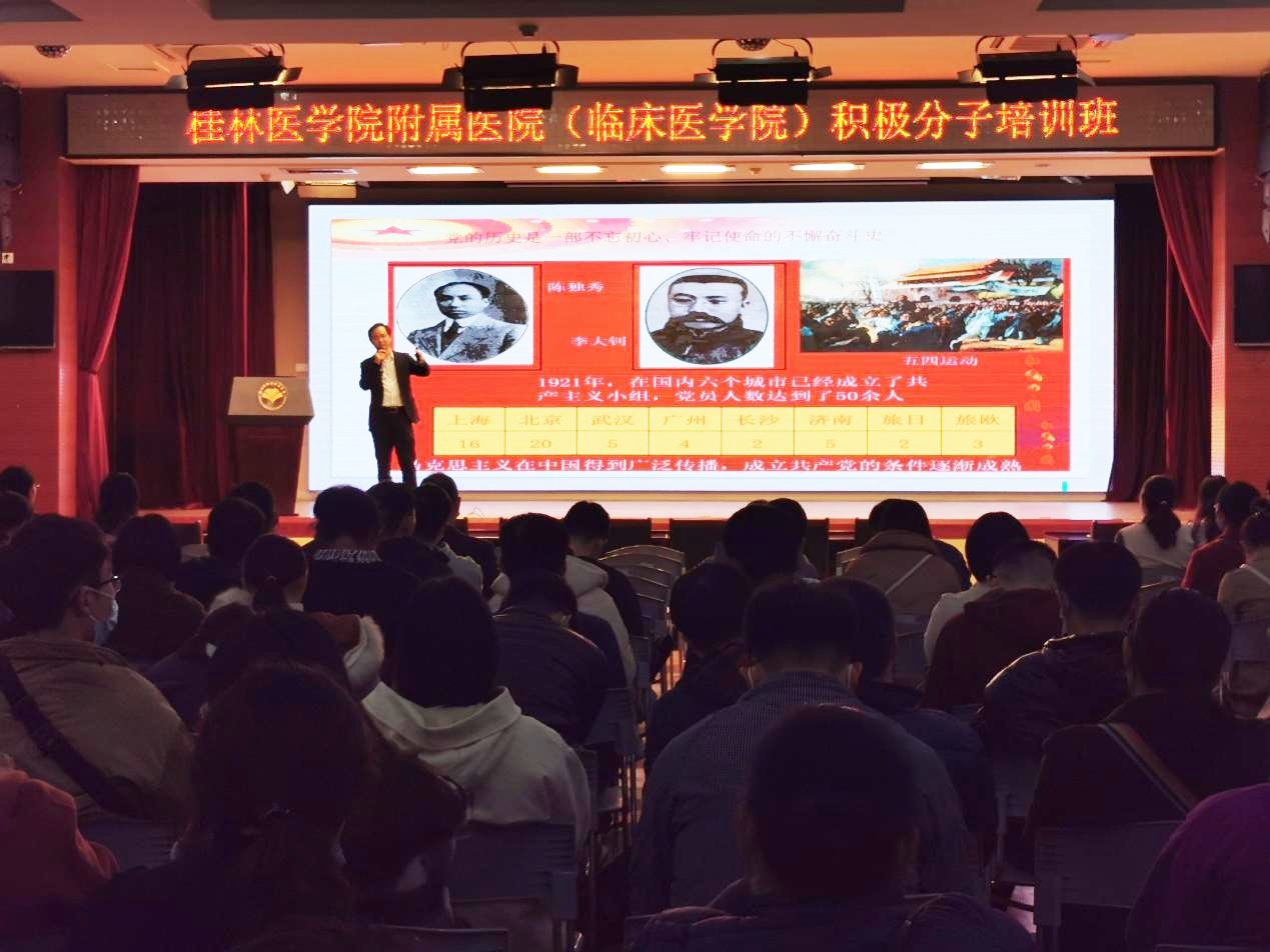 2021年是中国共产党成立100周年,一百年来,中国共产党从最初50多名党员,发展到现在成为了一个拥有9000多万党员的世界第一大执政党。9000多万党员身上汇聚的惊人力量,折射出伟大的民族精神,推动国家和民族不断前进。为把更多的优秀分子及时吸纳到党内来,不断壮大党员队伍,保持党员队伍的生机活力,桂林医学院附属医院(临床医学院)分党校于11月15日至12月1日在乐群和临桂两个校区举办了第二十一期党校培训班,此次培训班邀请到桂林医学院党委常委、副院长、组织部部长马献力,桂林医学院党委常委、副院长、附属医院院长、副书记李清华,桂林医学院党委常委、统战部部长李海林,桂林医学院附属医院党委书记宋剑非等12位老师进行专题授课。共有243名入党积极分子、187名入党发展对象和163名预备党员参加培训。