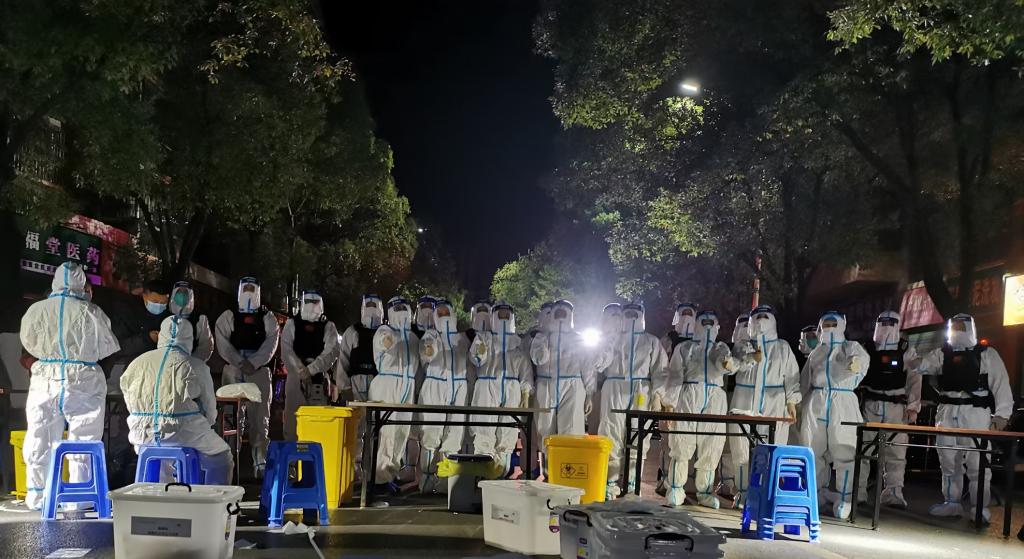 作为临桂区的唯一一家三级甲等综合医院,12月6日晚上医院闻令而动,第二附属医院党委书记文琼仙、院长葛波、副院长袁晟光靠前指挥,医务部、护理部、后勤部、检验科、信息科等部门第一时间组织50多名医务人员成立两支应急核酸检测医疗队,并调齐核酸检测设备,于12月7日凌晨1时许前往阳性患者在临桂的活动轨迹之地仙湖路段全力配合落实核酸检测等各项疫情防控措施。